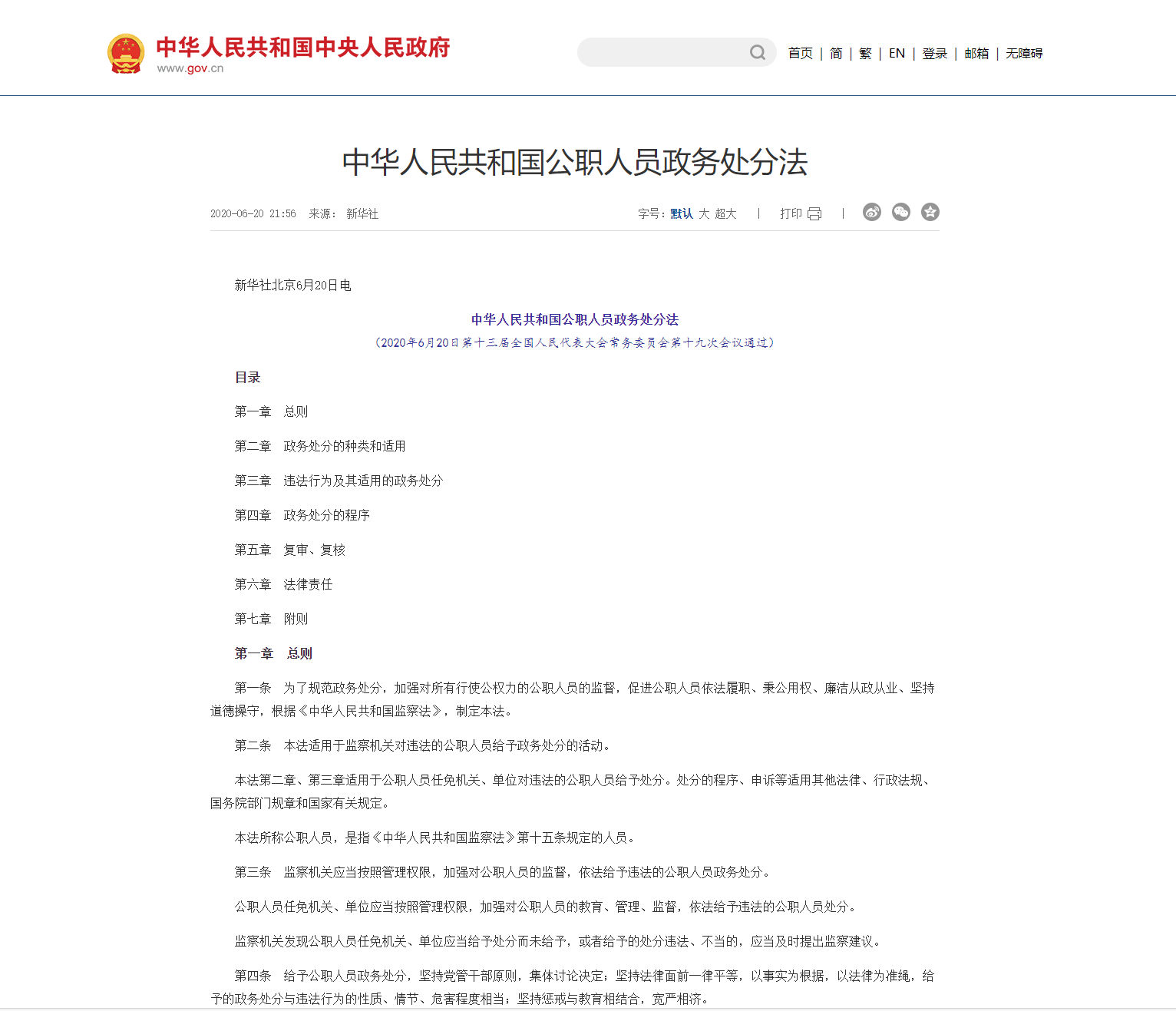 中華人民共和國(guó)監(jiān)察法 第一章總則第一條為了深化國(guó)家監(jiān)察體制改革,加強(qiáng)對(duì)所有行使公權(quán)力的公職人員的監(jiān)督,實(shí)現(xiàn)國(guó)家監(jiān)察全面覆蓋,深入開展反腐敗工作,推進(jìn)國(guó)家治理體系和治理能力現(xiàn)代化,根據(jù)憲法,制定本法。第二條堅(jiān)持中國(guó)共產(chǎn)黨對(duì)國(guó)家監(jiān)察工作的領(lǐng)導(dǎo),以馬克思列寧主義、毛澤東思想、鄧小平理論、“三個(gè)代表”重要思想、科學(xué)發(fā)展觀、習(xí)近平新時(shí)代中國(guó)特色社會(huì)主義思想為指導(dǎo),構(gòu)建集中統(tǒng)...