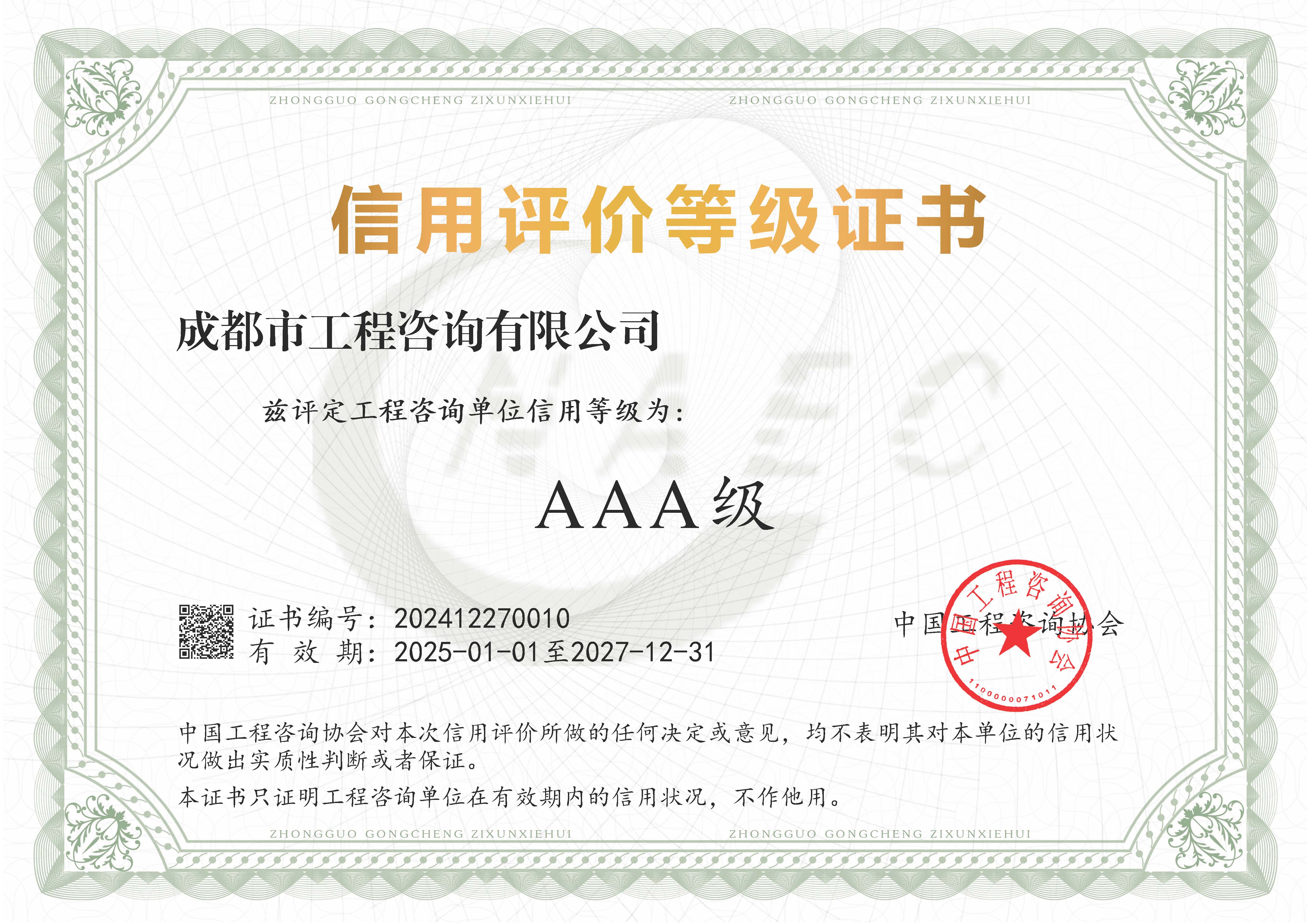 中國工程咨詢協(xié)會信用評價AAA級證書