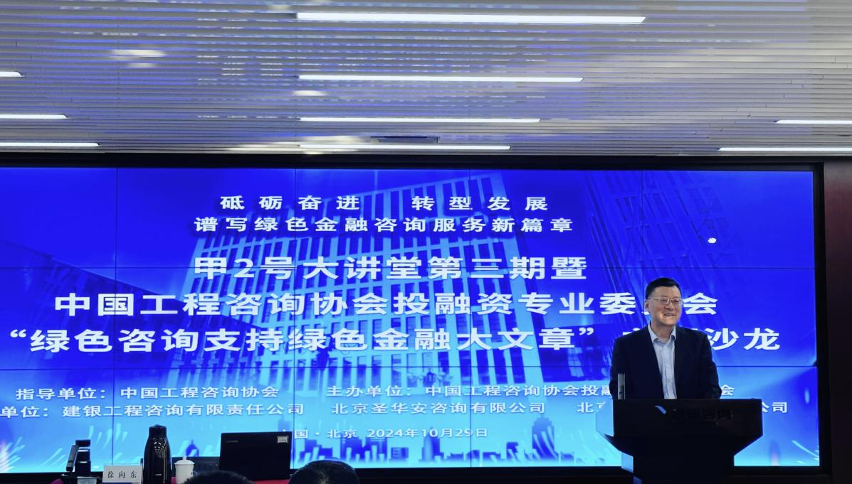 2024年10月29日,中國(guó)工程咨詢協(xié)會(huì)投融資專業(yè)委員會(huì)在北京成功舉辦了“綠色咨詢支持綠色金融大文章”主題沙龍。本次沙龍由建銀工程咨詢有限責(zé)任公司、北京財(cái)指南咨詢有限公司和北京圣華安咨詢有限公司承辦。建銀咨詢副總裁、執(zhí)行董事唐曉陽(yáng),業(yè)務(wù)總監(jiān)闕金聲、劉海濤等領(lǐng)導(dǎo)出席,沙龍活動(dòng)由專委會(huì)秘書長(zhǎng)闕金聲主持。