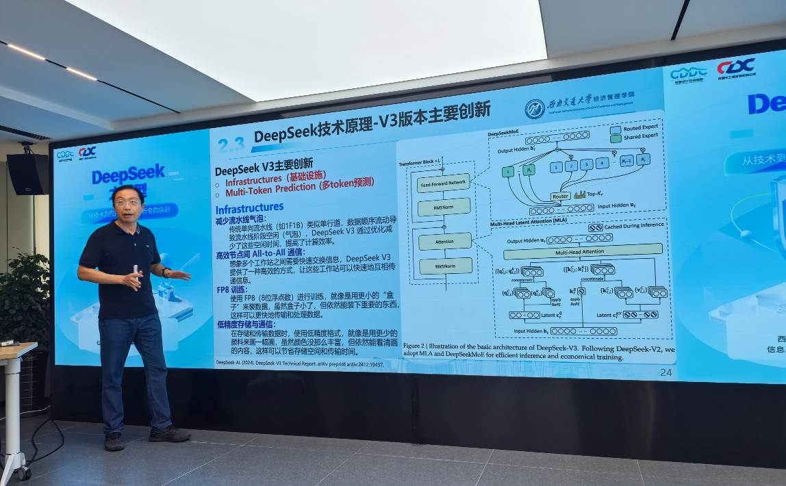 在數(shù)字化浪潮席卷全球的今天,人工智能正以前所未有的速度重塑各行各業(yè)。7月8日,由公司主辦的“DeepSeek大模型——從技術(shù)到應(yīng)用的全面解析”專題培訓(xùn)在五樓會議室成功舉行。本次培訓(xùn)特邀西南交通大學(xué)經(jīng)濟管理學(xué)院信息系統(tǒng)與運營管理系教授、博士生導(dǎo)師徐進擔(dān)任主講,公司領(lǐng)導(dǎo)及技術(shù)骨干齊聚一堂,共同探索人工智能大模型賦能工程咨詢行業(yè)的前沿趨勢與實踐路徑。